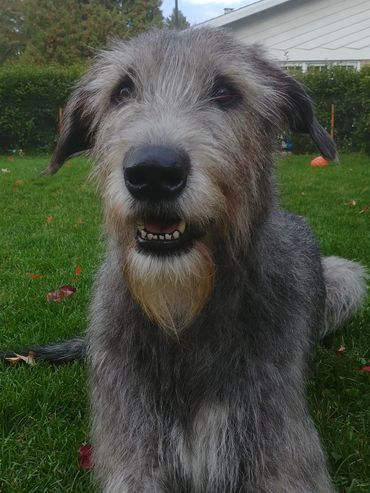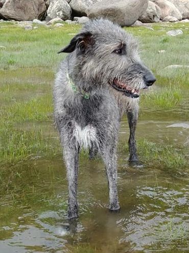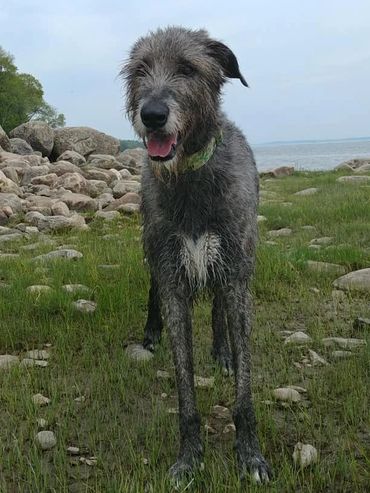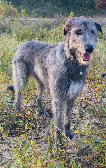 Depuis qu'elle est chiot, nous avons pu la voir évoluer autant physiquement que mentalement puisqu'elle et sa famille habitent à moins de 5 minutes de l'élevage. Cara est tout simplement comme sa maman, un tempérament en or, d'une grande douceur et délicatesse. Elle possède également de merveilleux traits physiques qu'elle a hérités de ses deux superbes parents : de belles oreilles noires en rosette, un poil dru qui s'épile facilement, une belle conformation de tête. En plein ce que nous recherchons à préserver chez nos Wolfhounds! Sa santé est #1 et nous sommes très satisfaits des résultats de ses tests. C'est pour nous une immense chance, une fierté et une joie incomparable d'avoir l'opportunité de continuer la lignée de notre Faolan à travers Cara et de l'intégrer à notre programme d'élevage.