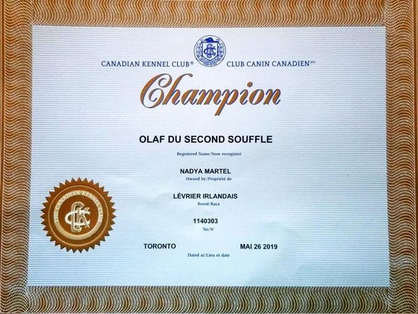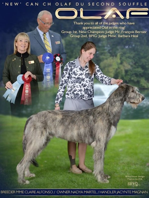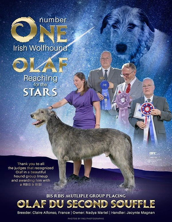 En date du 26 juin 2022, Olaf est maintenant #1 Irish Wolfhound au Canada!